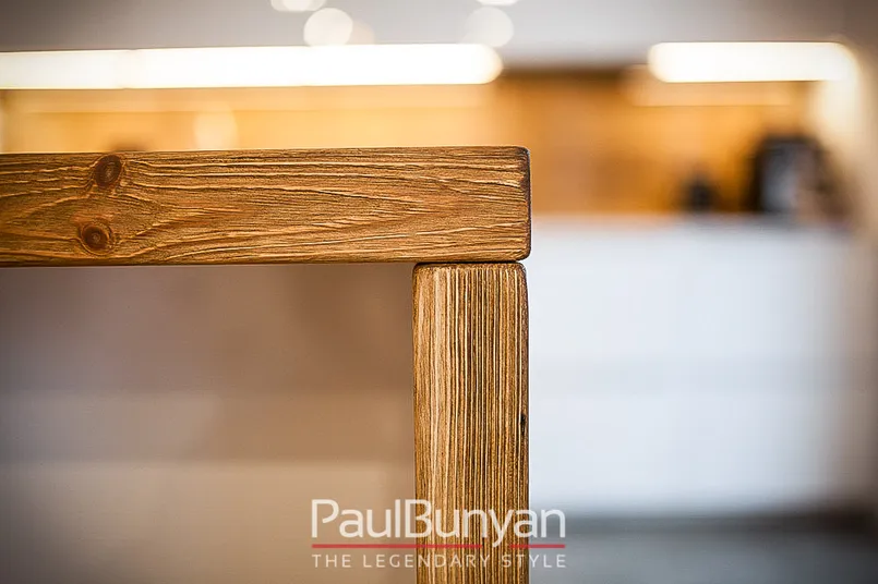 Do jego stworzenia używamy drewna pozyskanego ze starych belek konstrukcyjnych, które pochodzą z odzysku. Dajemy więc mu drugie życie! Jesteśmy pewni, że nasze produkty dobrze się sprawdzą w Twoim domu. Żeby blat jeszcze lepiej wpasował się w aranżację, możemy na etapie wykończenia zmienić jego kolor. Wybierz najlepiej dopasowaną do swoich potrzeb opcję: barwę naturalną, orzech, dąb antyczny, drewno lekko bielone lub bielone. Cena blatu jest uzależniona od jego wymiarów. W razie dodatkowych pytań lub indywidualnych wytycznych zapraszamy do kontaktu. Paul Bunyan na pewno będzie w stanie pomóc i udzielić Ci odpowiedzi!
